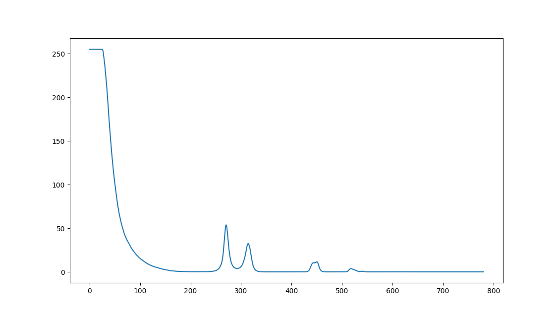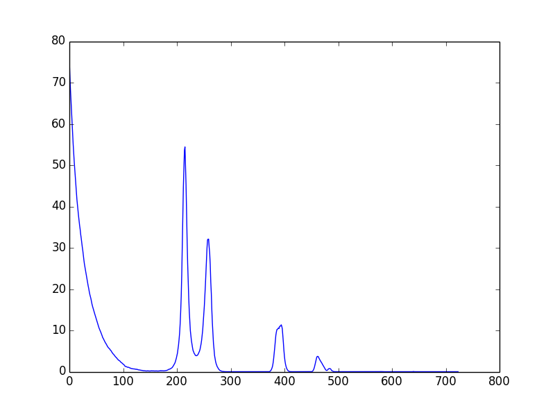 The peaks I found are at 270, 314, 450 and 517 which match quite perfecly what I measure with GIMP.