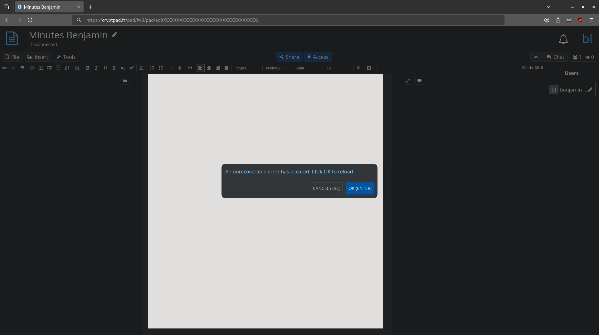 *An unrecoverable error has occured. Click OK to reload.* #22